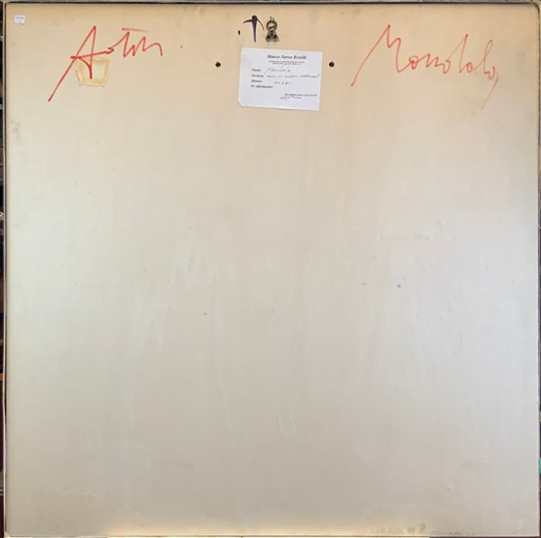 etichetta dell'artista al retro con i dati dell'opera e firmata dall'artista (difetti)
