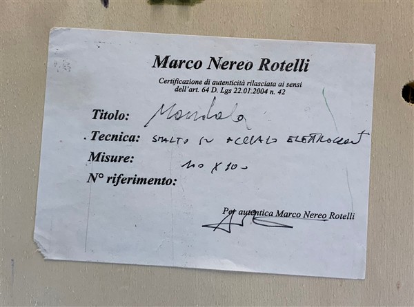 MARCO NEREO ROTELLI "Mandala" smalto su acciaio cm 97x97 etichetta dell'artista