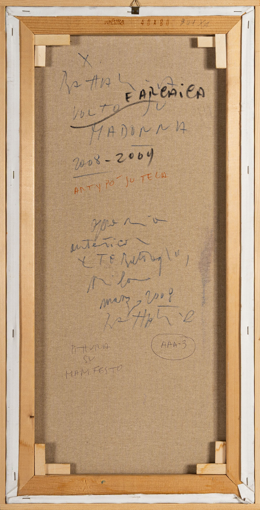 XANTE BATTAGLIA(1943)Madonna2008 - 2009Tecnica mista su manifesto applicato su tela80 x 40 cmFirmata in basso a sinistra e datata in basso a destraFirma, data, titolo e dichiarazione di autenticità firmata dall'artista al retroPROVENIENZA:Collezione privata, Alessandria