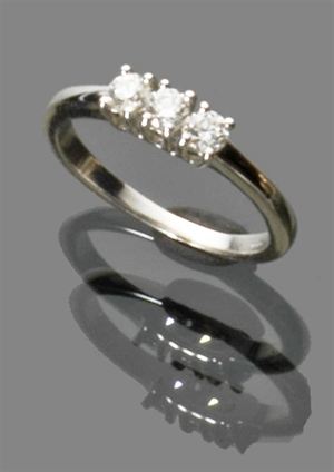 ANELLO Anello trilogy in oro bianco con diamanti taglio brillante per complessivi ct 0,50 ca Peso gr 3,50 Trilogy ring in white gold with brilliant cut diamonds totaling about 0.50 ct Weight 3.50 gr