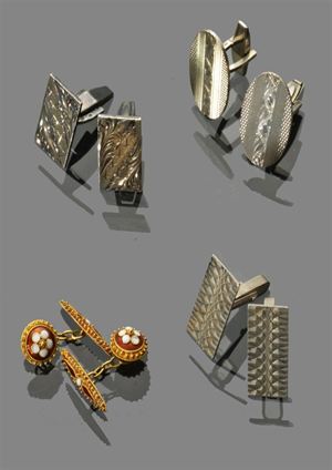 COPPIA DI GEMELLI Lotto composto da quattro coppie di gemelli di cui tre coppie in argento a titolo 900/°°° e una coppia in oro con smalti peso gr 2,80 epoca prima metà XX secolo Lot consists of four pairs of cufflinks, of which 3 pairs are in 900 silver and one pair in yellow gold and enamel weight 2.80 gr. (first half of the twentieth century)