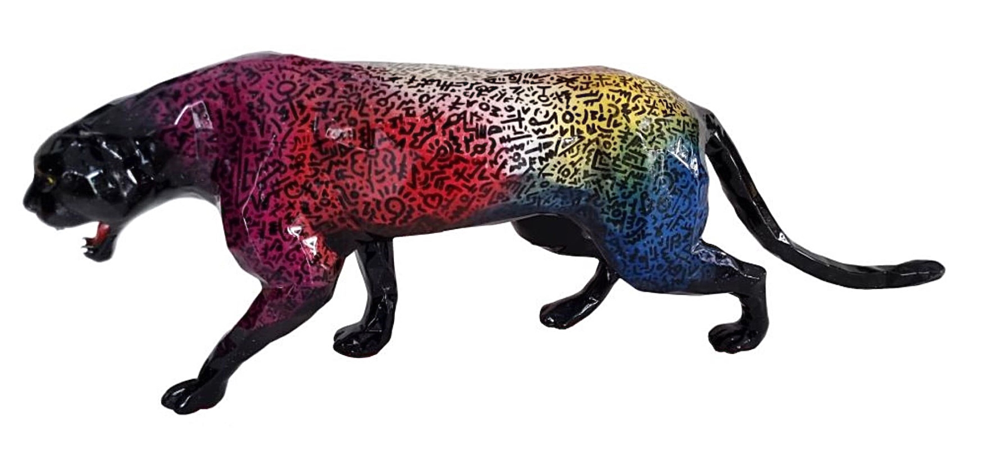 DED2008 - EYRAUD DAVID Francia 1971 "Black panther" Scultura in resina, aerografo, acrilici e vernice brillante, cm 50x16x9, del 2023. Opera unica. Certificato di autenticità a cura dell'Artista.
