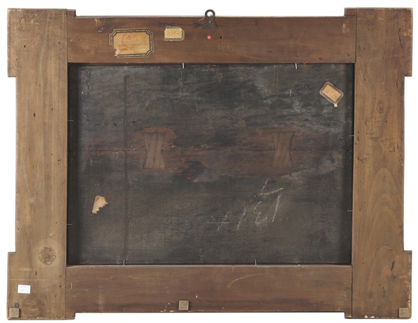 monogramma e data ''M 1669'' in basso al centro; etichette al retro, di cui una con timbro "Palazzo Strozzi città di Firenze" e attribuzione a Molenaer