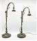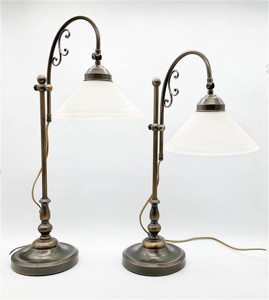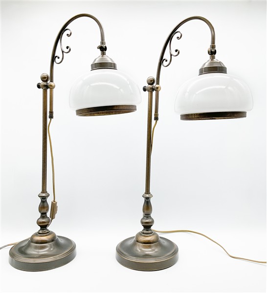 Lotto composto da due coppie di lampade d'appoggio in metallo brunito con paral