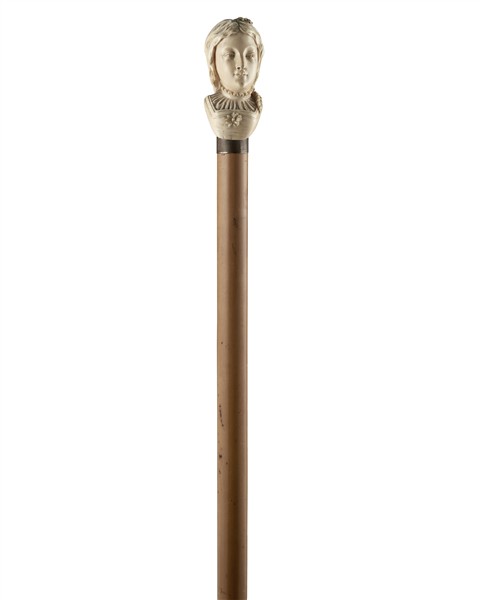 Manufacture of Dieppe, 19th century. Louis-Raymond BRUNEL (1818-1882). Walking stick with ivory taken in the shapeof a lady’s bust, signed and rented to the back (h. cm 89) (defects)