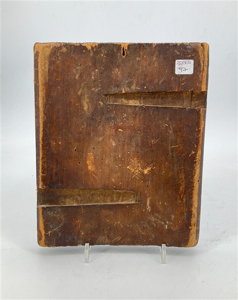 Tempera su tavola con basma in metallo inciso e argentato (cm 28x24) (difetti)