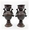 Coppia di vasi a balaustro biansati in bronzo con decori a rilievo, il corpo de