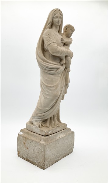 Ignoto "Vergine col Bambino" Antica scultura in pietra scolpita su base a plint