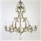Lampadario a otto luci in metallo sagomato e dorato con bordure perlinate e pen