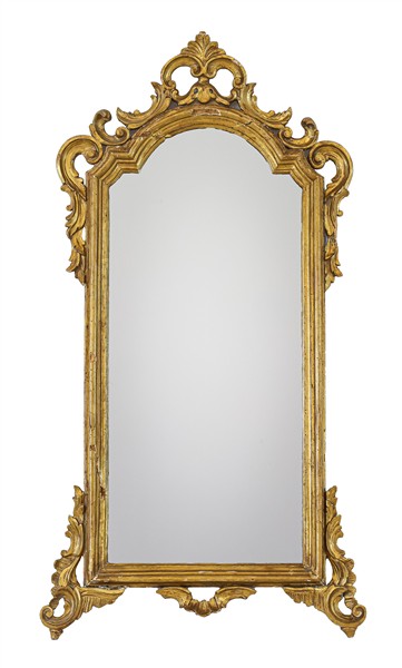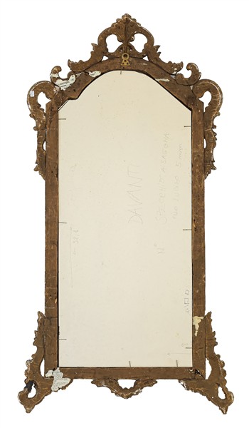 Lot 173 | Specchiera con cornice sagomata in legno dorato decorata da fregi a volute cont