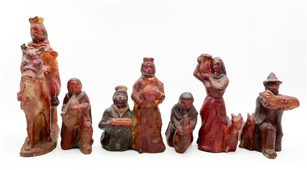 (Attr.) Presepe in terracotta dipinta composto da dodici figure (h max cm 29) (difetti)