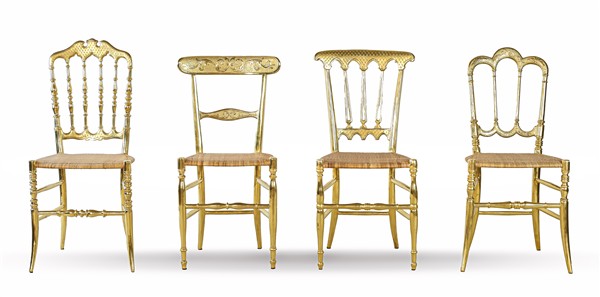 Delmonte Enrico, Chiavari. Quattro diverse sedie chiavarine in legno dorato con