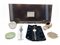 Cartone contenente due multipli moderni su lamina d'argento, alcuni orologi da