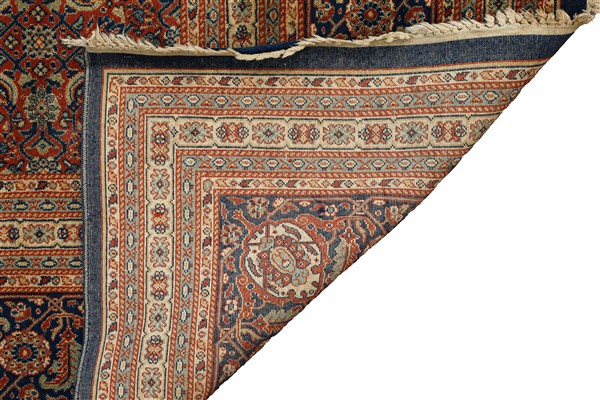 Tappeto meccanico, recente manifattura. Decoro orientale Herati su fondo rosso (cm 298x195) (difetti e rotture)