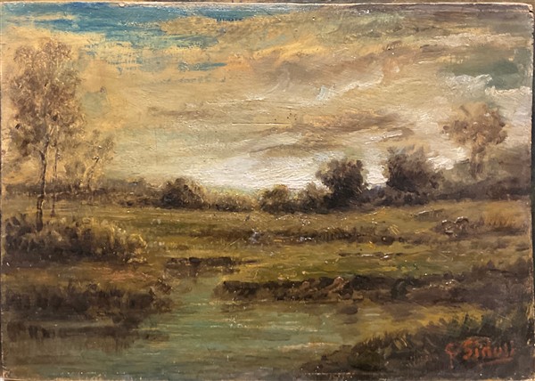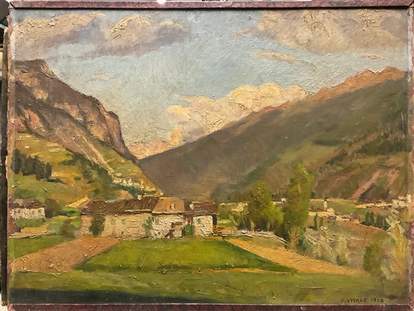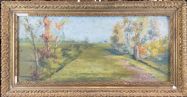 Lotto composto da sette dipinti ad olio raffiguranti "Paesaggi" su diversi supp