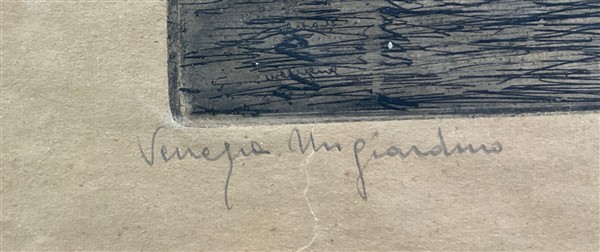 Firma indecifrata "Venezia un giardino" acquaforte (lastra cm 16x23; foglio cm