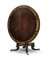 Tavolo a vela impiallacciato in mogano e intarsiato in ottone, piano circolare
