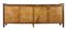 Credenza in legni vari con fronte a quattro sportelli pannellati e tre cassetti