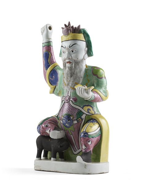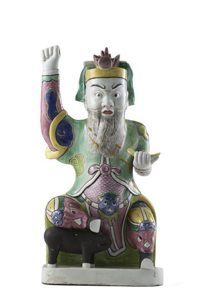 Figura di guerriero in porcellana Famiglia Rosa. Cina, dinastia Qing (1644-191