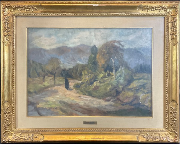 L. Bartolini, "Passeggiata" olio su compensato (cm 40x57) firmato in basso a