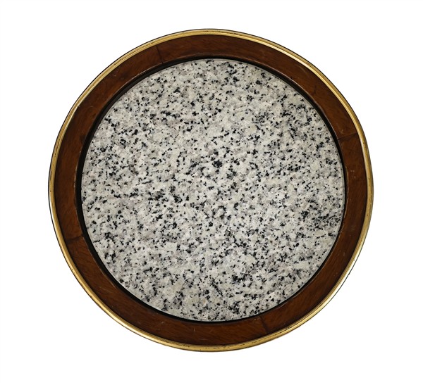 Lot 425 | Alzata a due ripiani lastronata in legni vari, profili in bronzo dorato, fascia