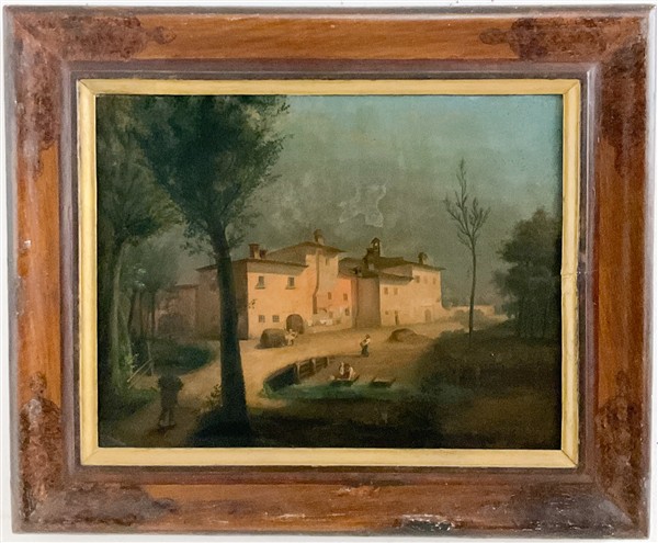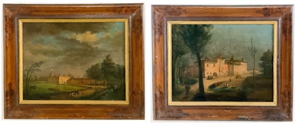 F. Bombardieri "Coppia di vedute lombarde" 1859 oli su tela (cm 58x74) di cui