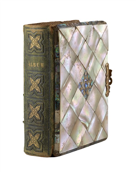 Photo album "du Prince et Princesse de Caraman Chimay" with twenty-five portraits starting from 1865, binding with mother-of-pearl inlays (defects and losses)