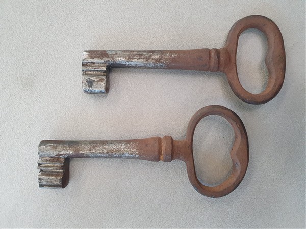 Cassaforte in legno interamente rivestito in ferro borchiato, parte superiore c