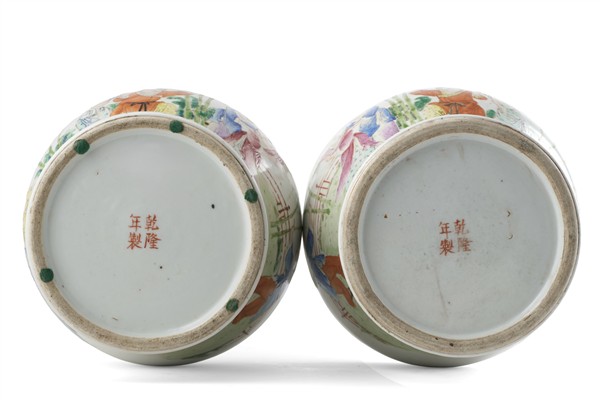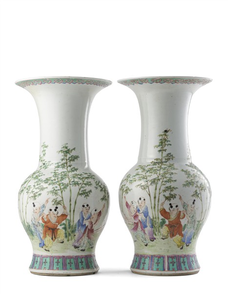 Lot 521 | Coppia di vasi a balaustro in porcellana Famiglia Rosa decorati da figure di fa