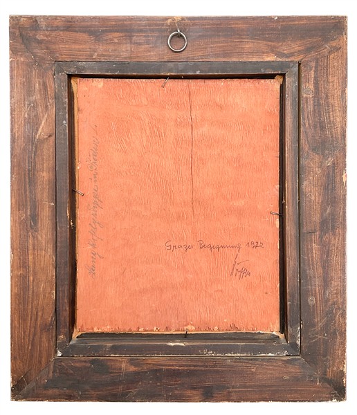 Scuola austriaca dell'inizio del secolo XX "Paesaggio montano" olio su compen