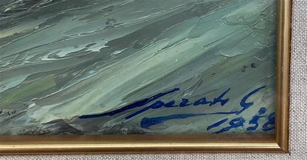 Gaetano Sperati "Tramonto a Bordighera" 1958 olio su cartone (cm 18x40) firmato