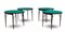 Gruppo di quattro tavolini da gioco con piano circolare in panno verde e gambe