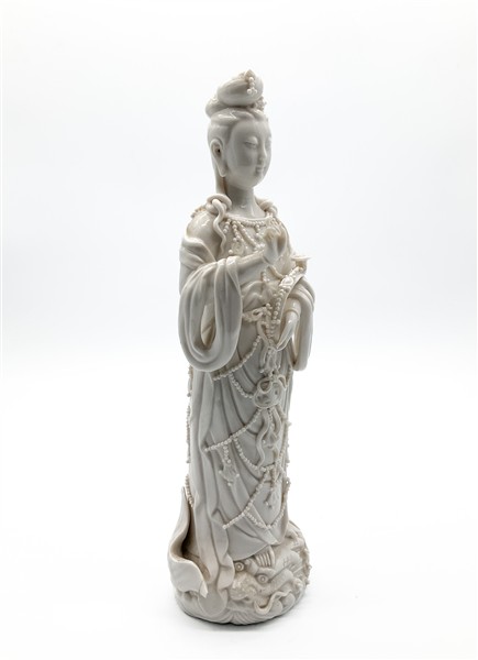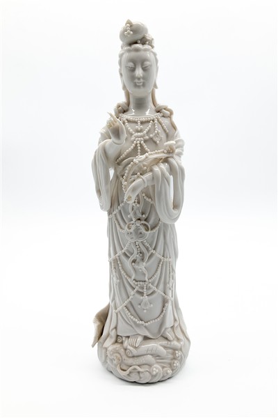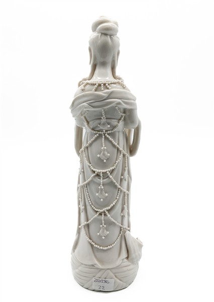 Lot 656 | Guanyin ingioiellata in porcellana bianca (h. cm 33) (difetti)