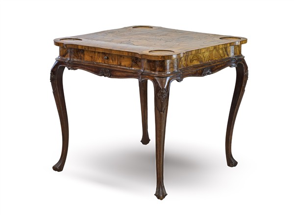 Tavolino da gioco in stile veneto settecentesco in noce e radica di noce, piano