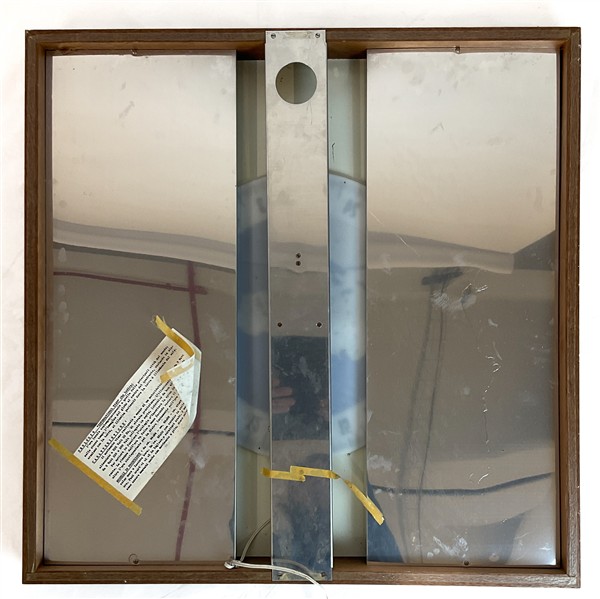 Orologio con ore del mondo, quadrante in vetro e materiale plastico con indicazione dei fusi orari del globo, movimento al quarzo. In cornice (cm 67x67) (difetti)