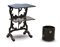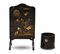 Lotto composto da una étagère in legno laccato a motivi orientali in policromia e oro su fondo nero con doppio ripiano pieghevole, inizio secolo XX (cm 48x71x34) e un cachepot di gusto orientale laccato con intarsi in madreperla a fiori (h cm 26) (difetti)