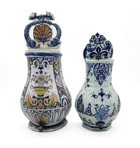 Lot 719 | Manifattura di Delft, secolo XVIII-XIX. Due fontanelle da parete in maiolica co