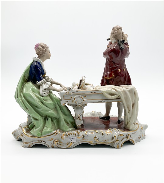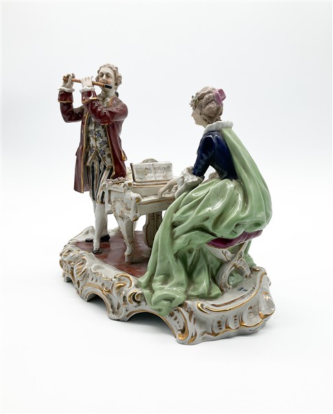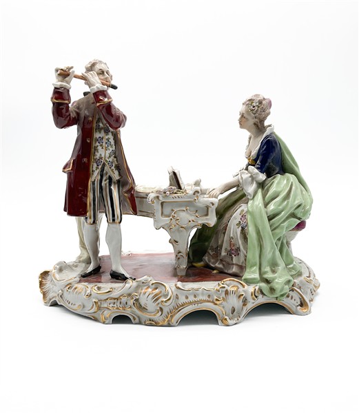 Gruppo in porcellana policroma profilata in oro raffigurante scena di concertin
