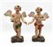 Coppia di angeli in legno intagliato e dipinto in policromia su base a zolla. Genova (?), secolo XIX (h max cm 35) (difetti e restauri)