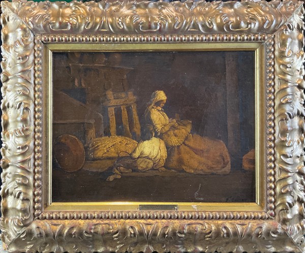 Filippo Carcano "Scena d'Interno" olio su tavola firmato in basso a destra in