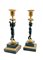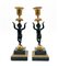 Coppia di candelieri di gusto Impero in bronzo brunito e dorato con fusto a fig