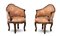 Coppia di poltroncine a pozzetto in noce con bordature scanalate e gambe termin