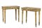 Coppia di console in legno intagliato e dorato, fascia scolpita a foglie d'acanto e vasi con colombe, gambe rastremate e scanalate, piedi torniti. Piani in breccia profilati in Verde Alpi. Toscana, secolo XVIII (cm 93x90x46) (difetti e mancanze)