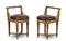 Coppia di sgabelli in stile Luigi XVI con schienale a giorno e seduta rivestita