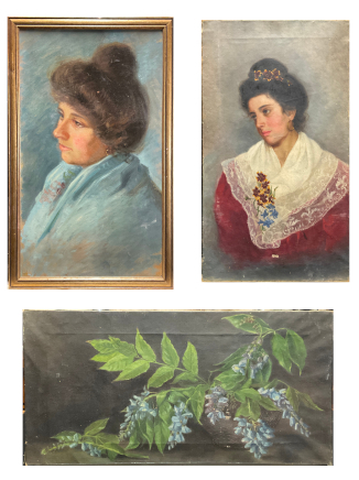 Lotto composto da tre dipinti ad olio di inizio secolo XX, di diversi soggetti