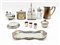 Due cartoni contenenti numerosi oggetti in metallo argentato, vetro e altri materiali (difetti)