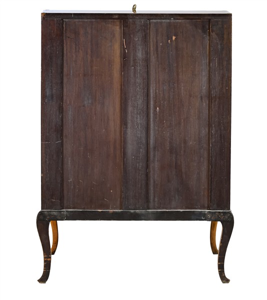 Ribaltina impiallacciata in satinwood e parzialmente dipinta in policromia a tr