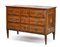 Cassettone lastronato filettato e intarsiato in noce e legno chiaro, fronte a t