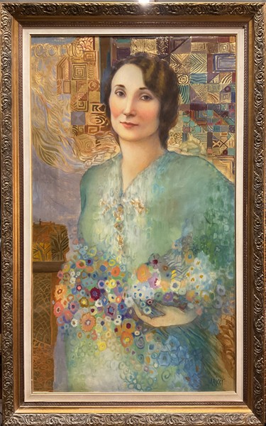 Ignoto "Ritratto femminile" acrilico su tela (cm 120x70) firmato in basso a des