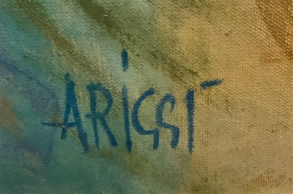 Ignoto "Ritratto femminile" acrilico su tela (cm 120x70) firmato in basso a destra L. Ariggi?, in cornice (difetti)